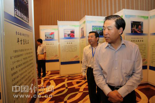 2013年全國食品安全宣傳周啟動儀式暨第五屆中國食品安全論壇6月17日在北京舉辦,今年主題為“社會共治 同心攜手維護食品安全”。圖為中央文明辦專職副主任王世明參觀食品安全“誠信守望者”展覽。中國經濟網 王耀峰/攝