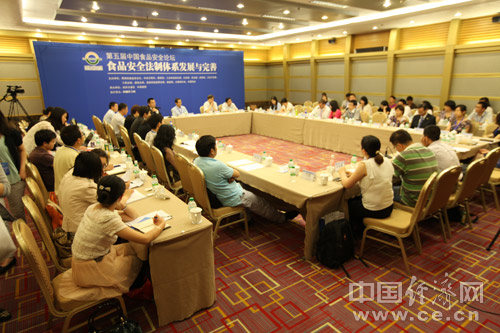 2013年全國食品安全宣傳周啟動儀式暨第五屆中國食品安全論壇6月17日在北京舉辦,今年主題為“社會共治 同心攜手維護食品安全”。圖為分論壇現(xiàn)場。中國經(jīng)濟網(wǎng) 王耀峰/攝
