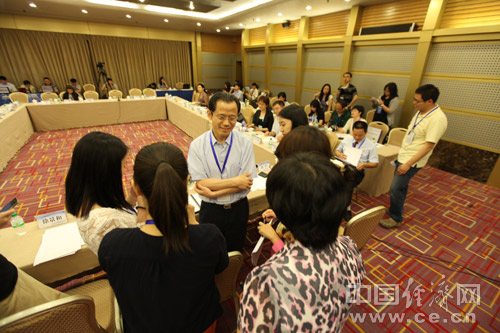 2013年全國食品安全宣傳周啟動儀式暨第五屆中國食品安全論壇6月17日在北京舉辦,今年主題為“社會共治 同心攜手維護食品安全”。圖為衛(wèi)生計生委食品安全標準與監(jiān)測評估司司長蘇志被采訪。中國經(jīng)濟網(wǎng) 王耀峰/攝